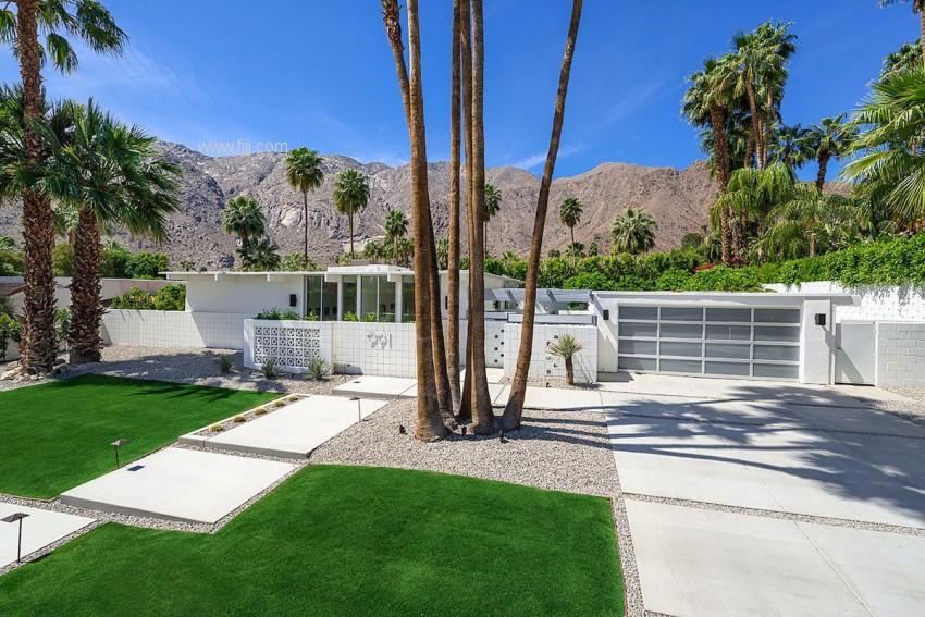 这个山区的私人住宅位于美国加州的棕榈泉。照片摄于夏季,大片的绿色植物、草地和蓝色的游泳池,灿烂明媚的阳光,给生活在冬季的我们带来心灵的慰藉。