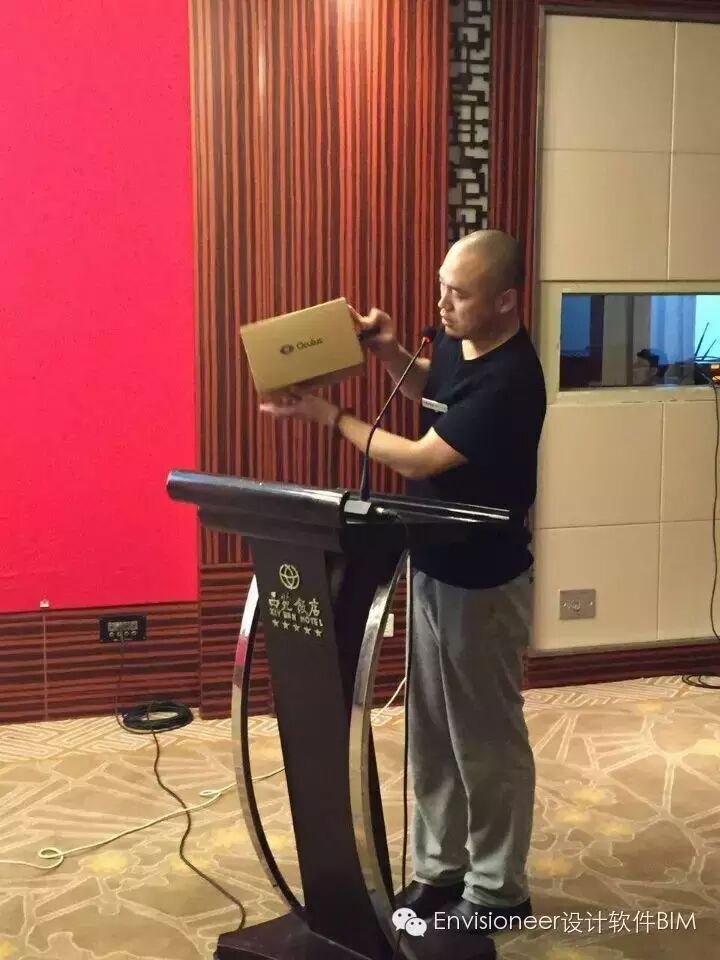 Envisioneer代表侯咏在会上展示oculus虚拟现实头盔