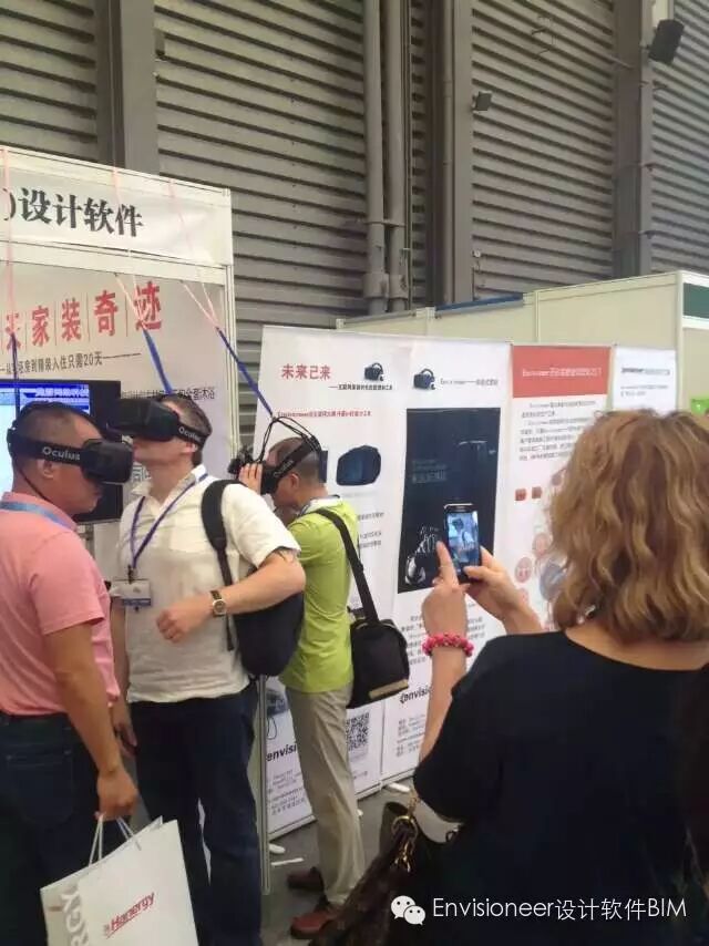 6月30日-7月2日,Envisioneer参加2015(上海)绿色建筑建材博览会,吸引了大批观众驻足,或观看Envisioneer宣传片,或了解Envisioneer软件作图操作,当然,更多人的愿意排队体验虚拟现实头盔oculus,体验3D立体效果的“虚拟样板间”。