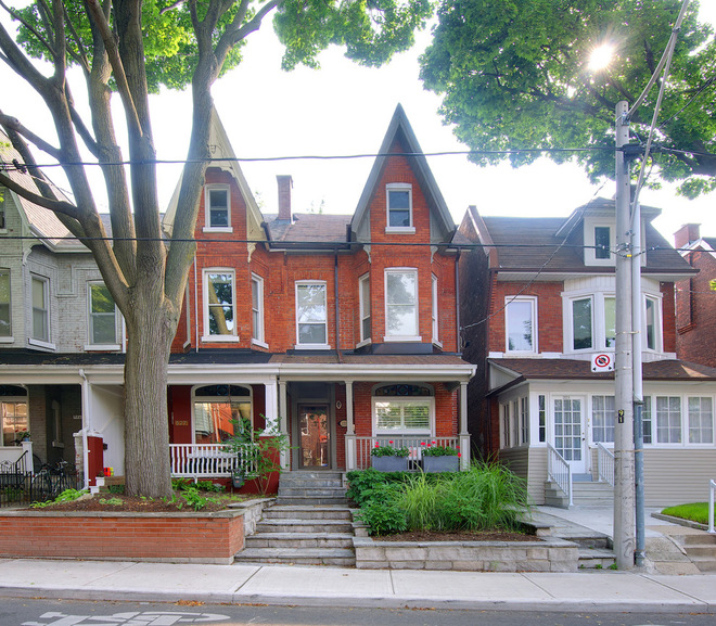 多伦多普遍的红砖墙,他们的房子融合在一排联栋别墅中。