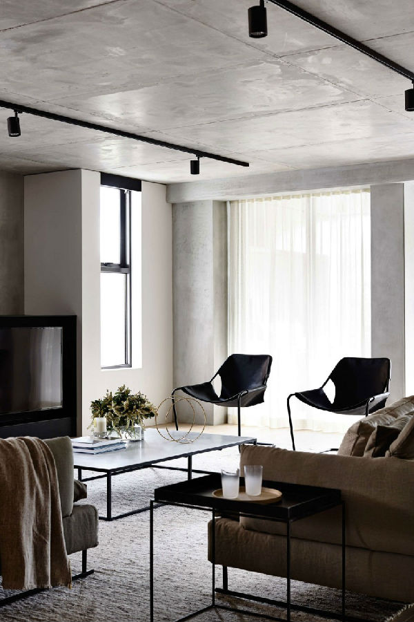 公寓的主体颜色是白色和灰色系列,整体是一种宁静的氛围。天花板没有经过修饰吊顶,只是水泥打磨光滑后的产物,和房间的颜色却不冲突。
