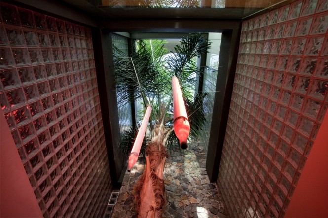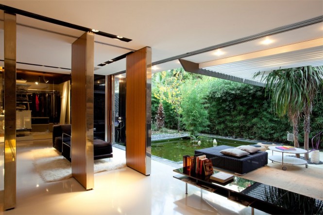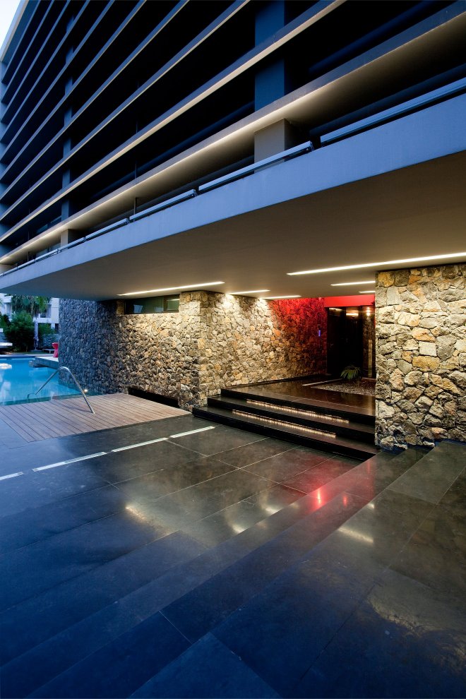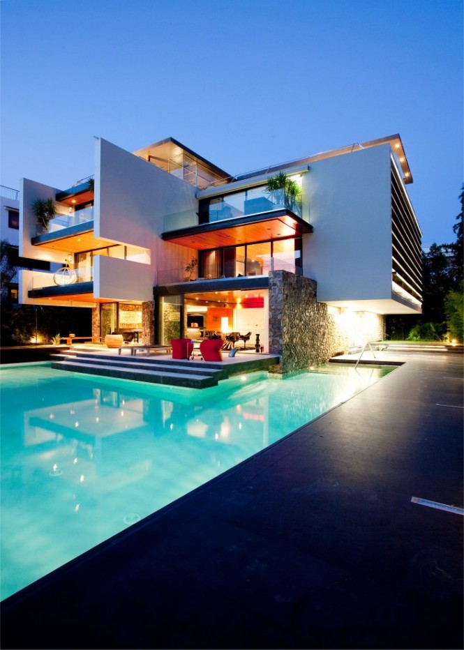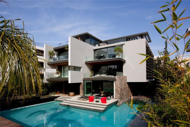 游泳池周围的建筑,和地面上的小池塘促进宁静和清凉镇静的感觉。