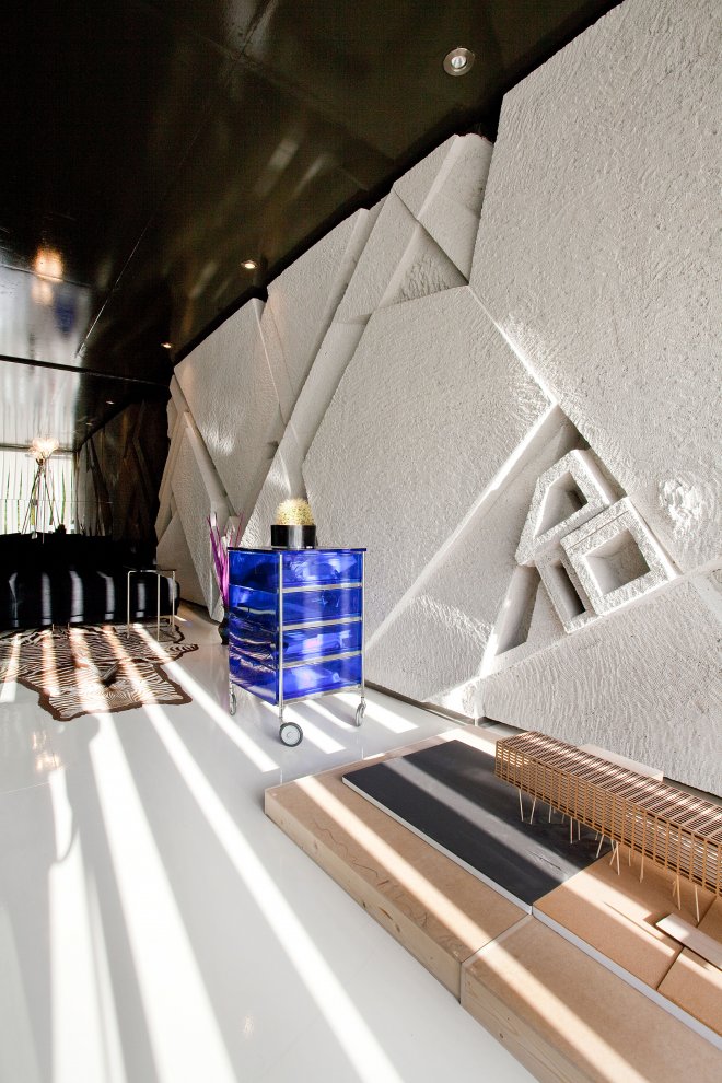 詹尼Aspras雕塑,装饰客厅的墙壁之中的奢华与现代抽象的怪癖。